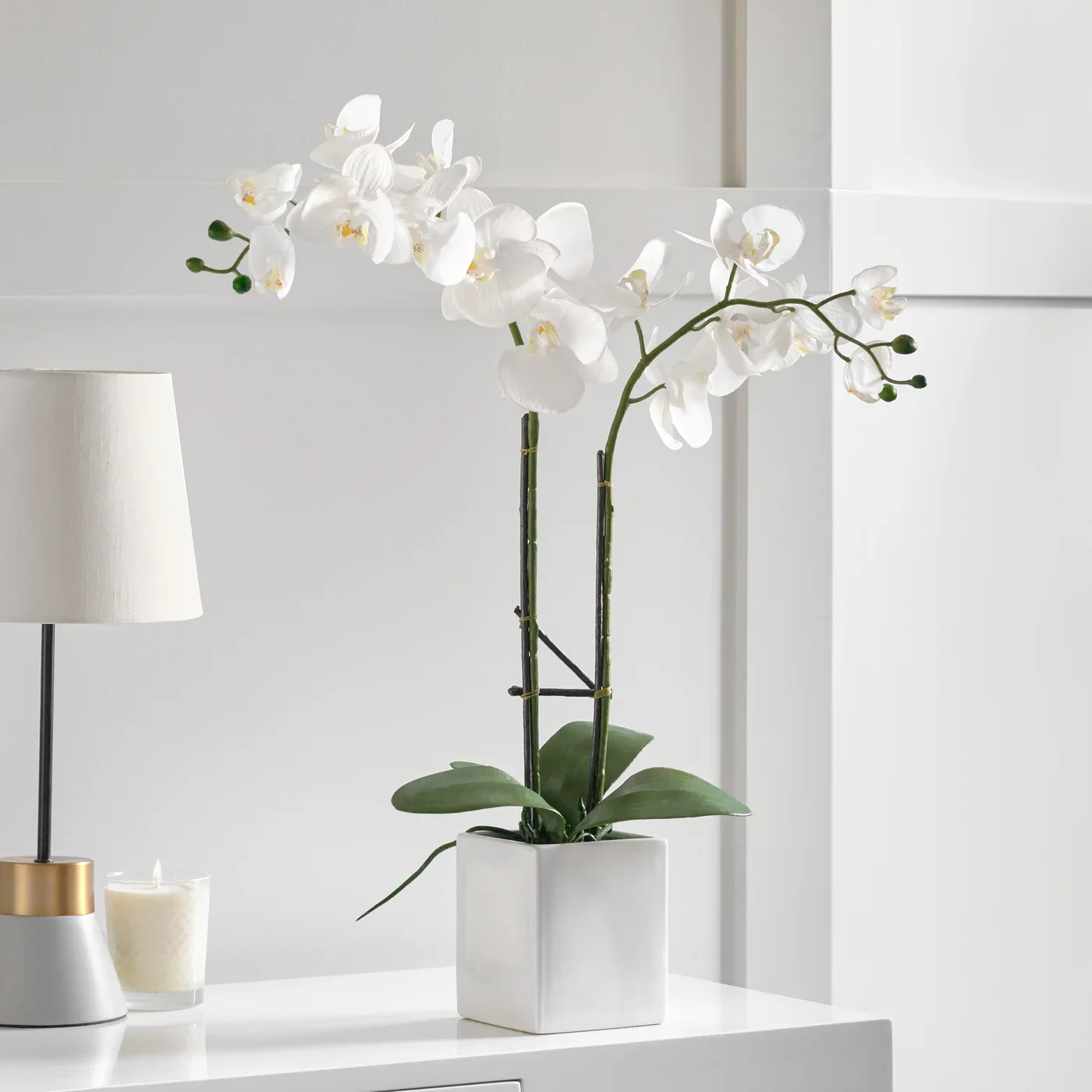 This double stemmed white orchid brings timeless elegance and refined beauty to any space.